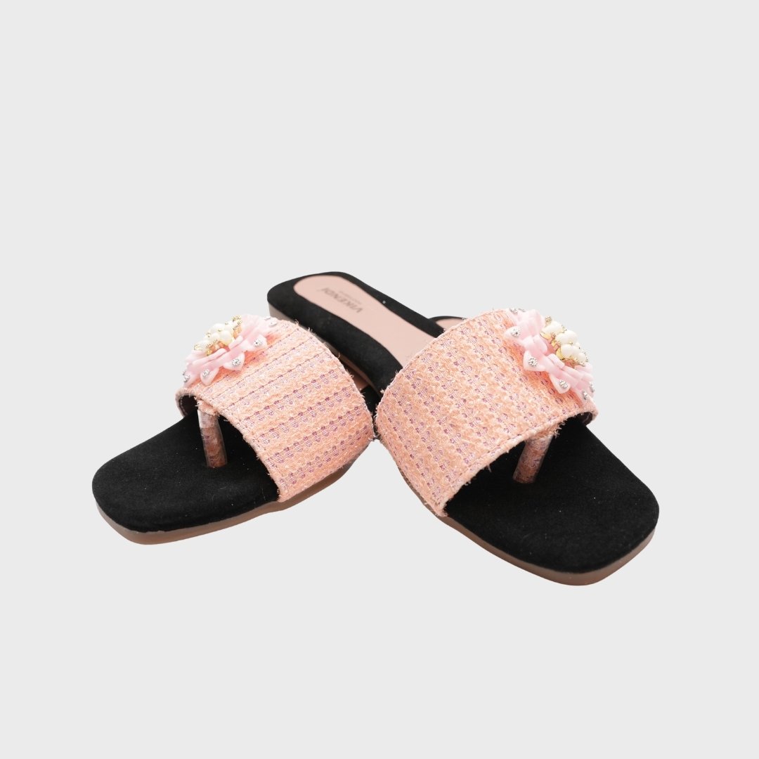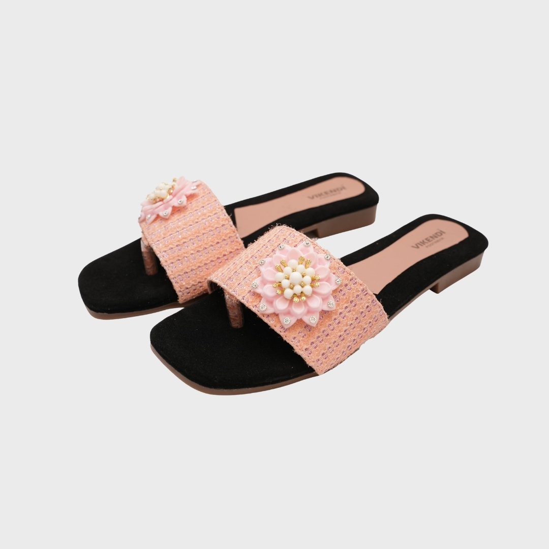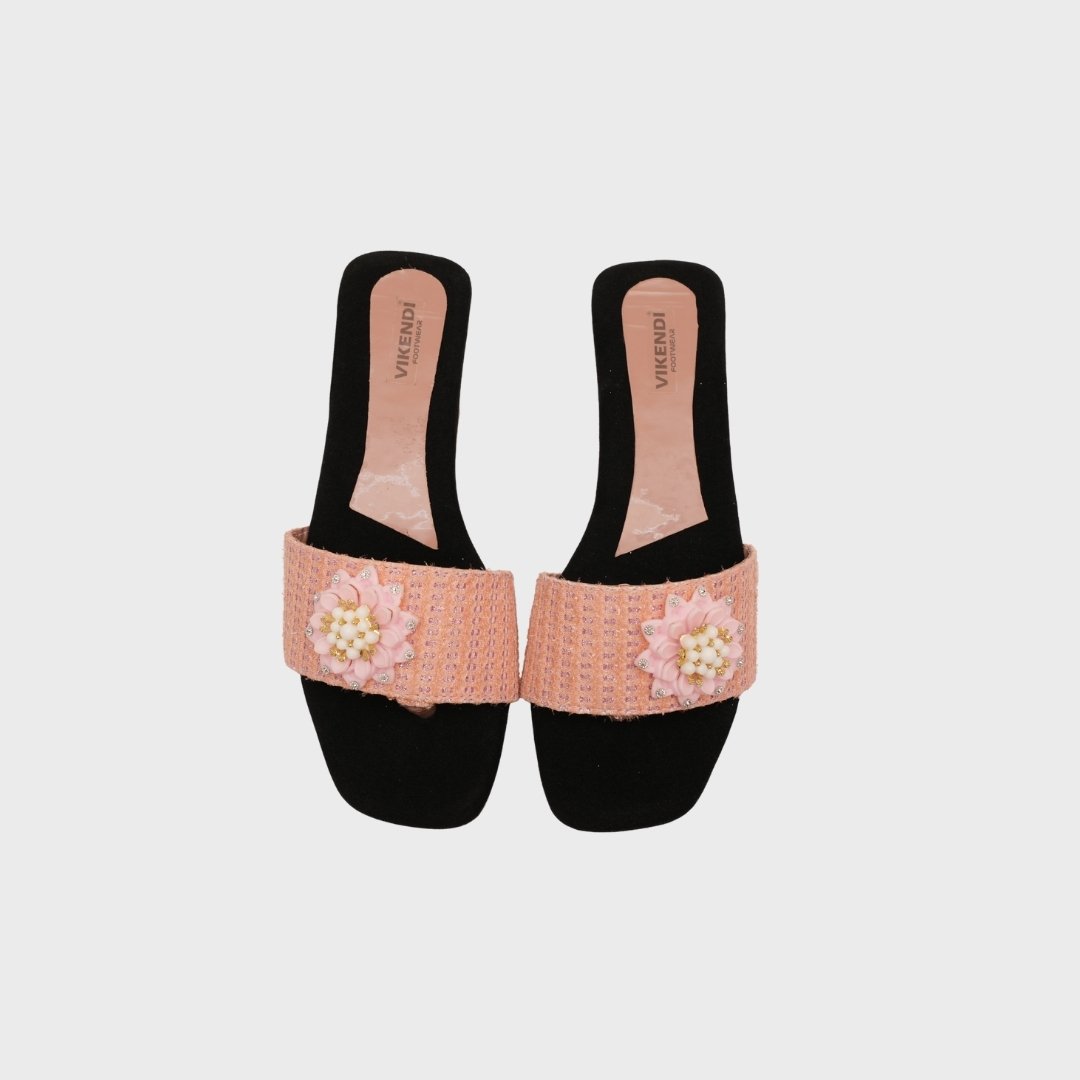 Step into soft elegance with the VIKENDI Floral Comfort Flats, designed to add a delicate charm to your everyday style. Featuring a beautifully handcrafted floral embellishment with pearl detailing, this pair exudes grace and femininity in every step.